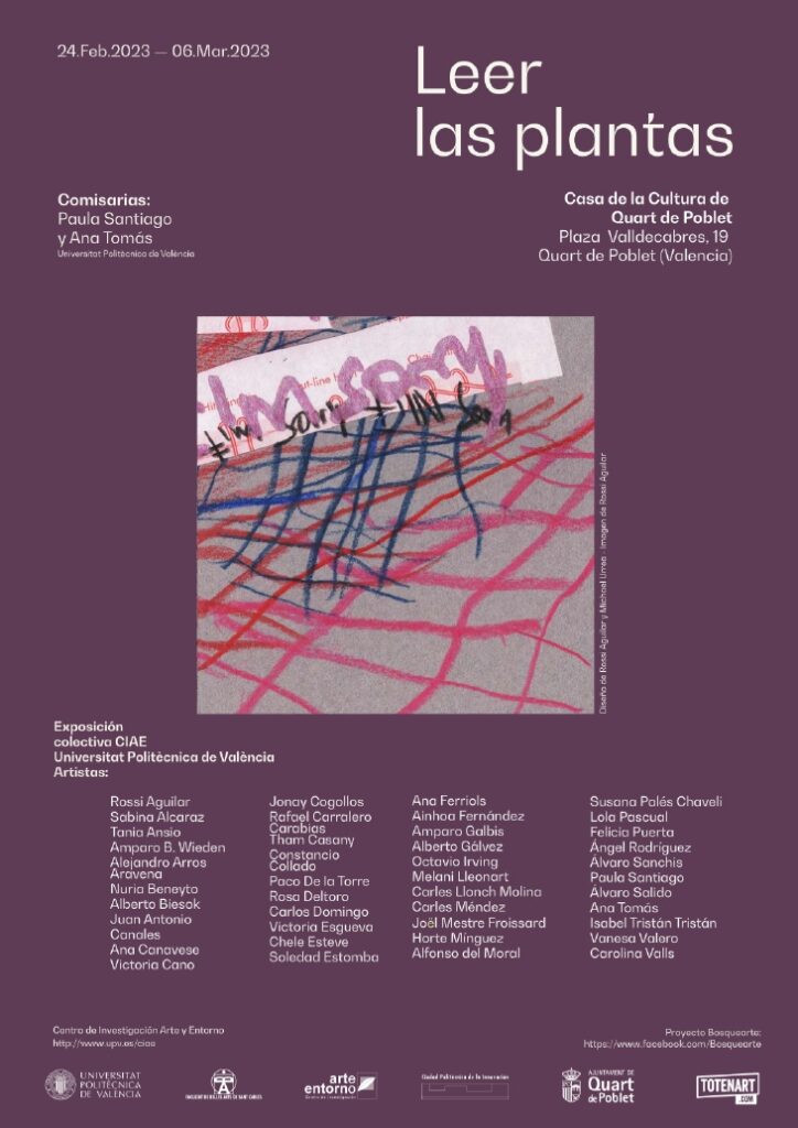 Artistas: Rossi Aquilar, Sabina Alcaraz, Tania Ansio, Amparo B. Wieden, Alejandro Arros Arcivena, Nuria Beneyto, Alberro Biesok, Juan Antonio Canales, Ana Canavese, Victoria Canco, Jonay Cogollos, Rafael Carralero Carabias, Tham Casany, Constancio Collado, Paco De la Torre, Rosa Deltoro, Carlos Domingo, Victoria Esgueva, Chele Esteve, Soledad Estomba, Ana Ferriols, Ainhoa Fernández, Amparo Galbis, Alberto Gálvez, Octavio Irving, Melani Lleonart, Carles Llonch Molina, Carles Méndez, Joël Mestre Froissard, Horte Mínguez, Alfonso del Moral, Susana Palés Chaveli, Lola Pascual, Felicia Puerta, Ángel Rodríguez, Álvaro Sanchis, Paula Santiago, Álvaro Salido, Ana Tomás, Isabel Tristán Tristán, Vanesa Valero, Carolina Valls