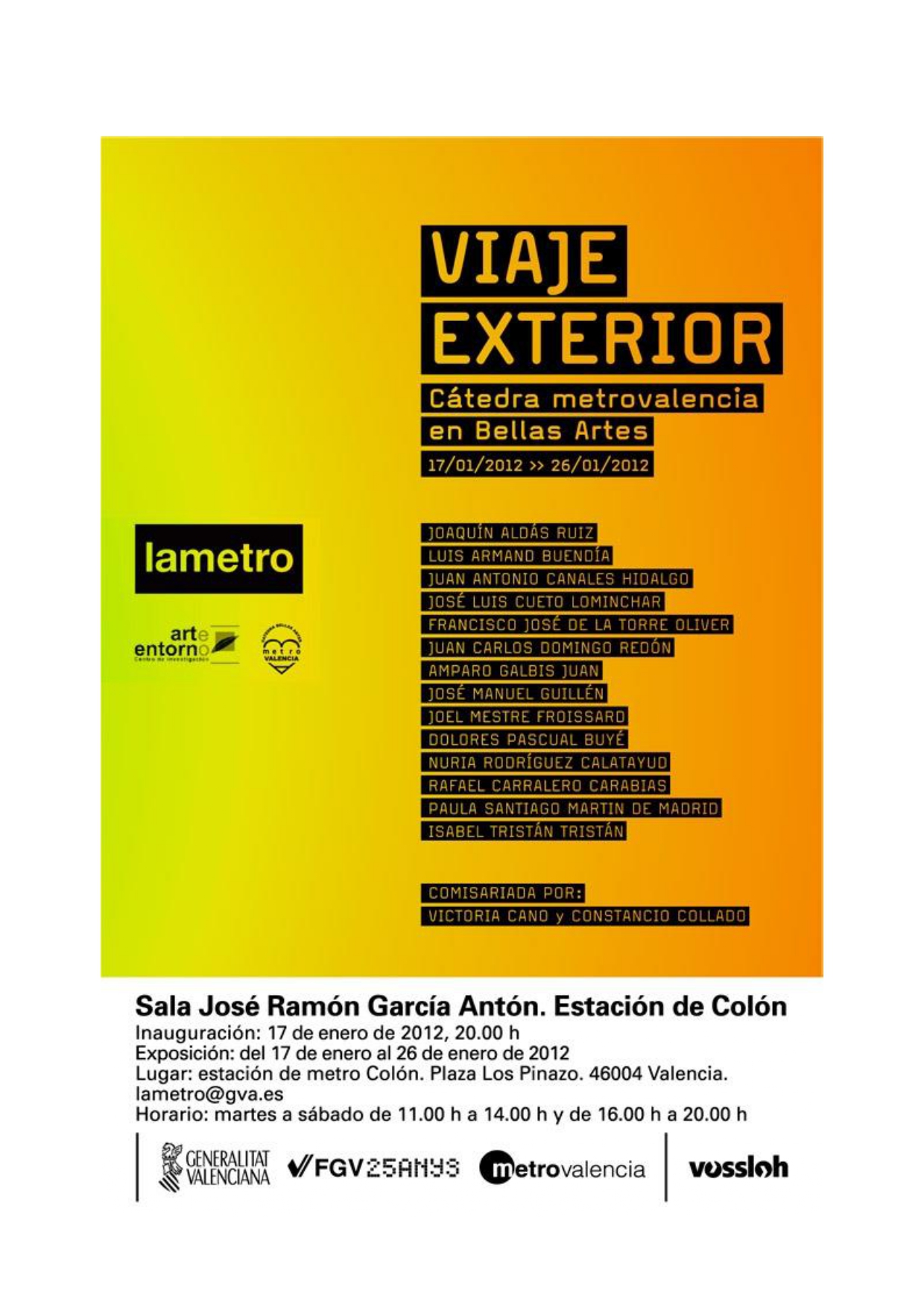 Lugar: Sala de exposiciones «Cátedra», Metro de Colón, Plaza de los Pinazo, Valencia